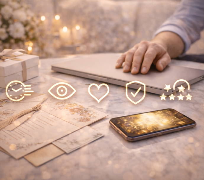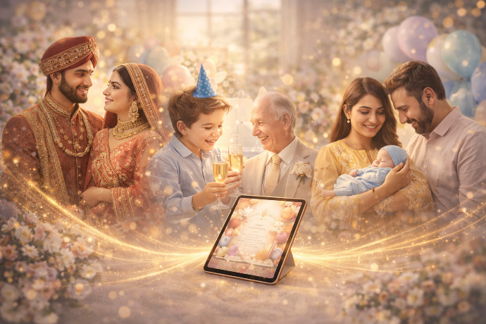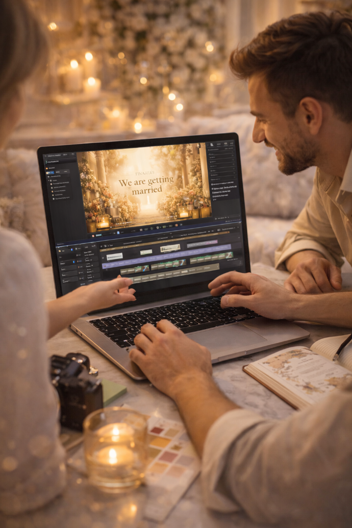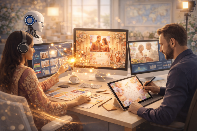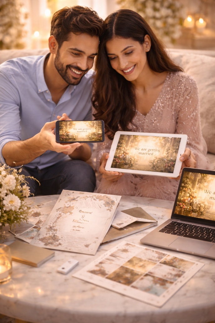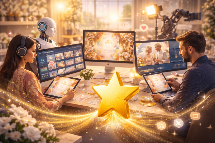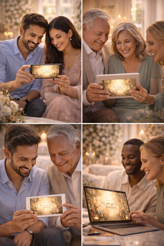 We blend AI + Human Designers + Storytellers to create polished, cinematic, emotion-rich invitations.