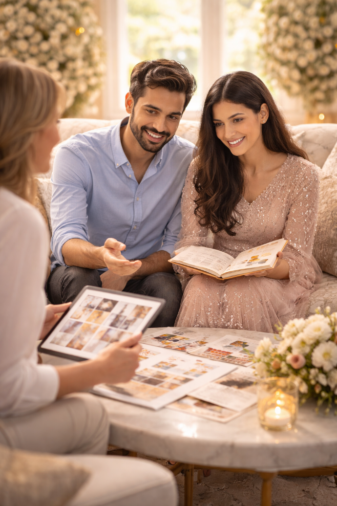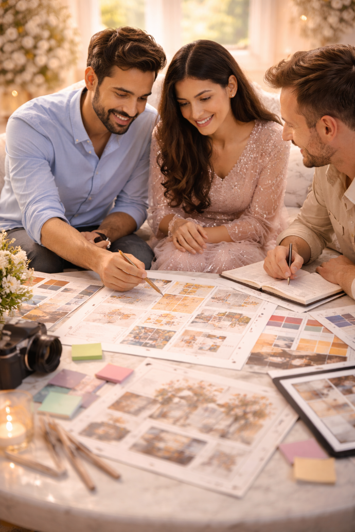 Curated colour palettes aligned with your wedding/birthday/anniversary theme. Every frame maintains visual harmony and premium consistency.